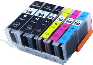 6 Compatible ink Cartridges, For Canon PGI-550XLBK, CLI-551XLBKCMY, NON-OEM