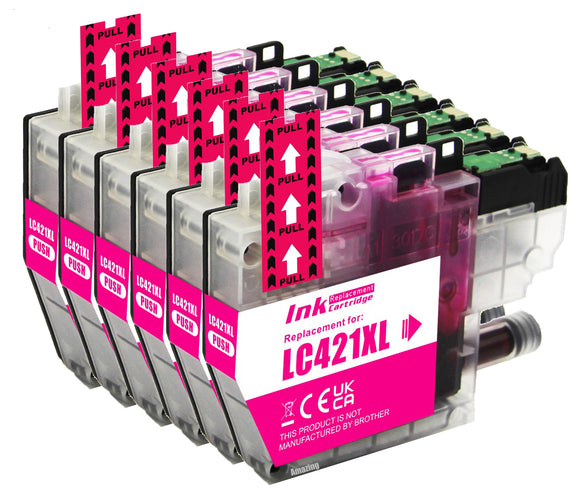 6 Compatible Magenta Ink Cartridge, Replaces For Brother LC421XLM NON-OEM