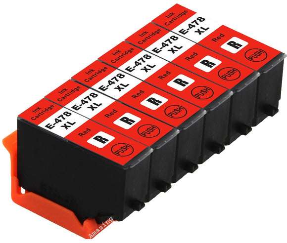 6 Compatible Red Ink Cartridge, For Epson 478XL, T04F5, NON-OEM