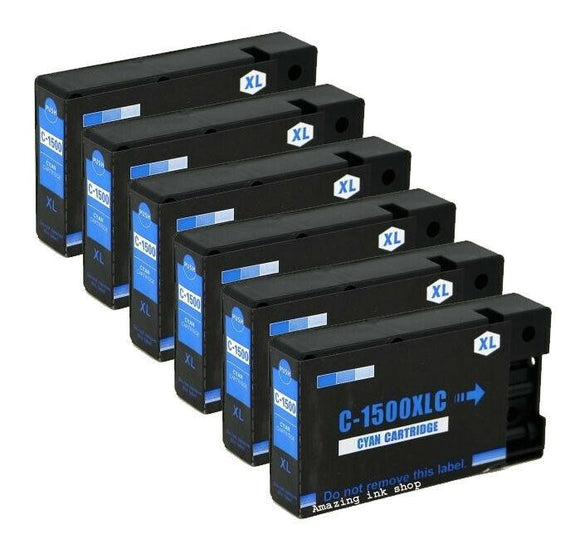 6 Cyan Compatible Ink Cartridges, Replaces For Canon PGI1500XLC, NON-OEM