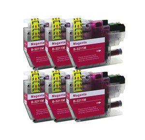 6 Magenta Compatible Ink Cartridges, Replaces For Brother LC3211 LC3211M LC-3211M NON-OEM
