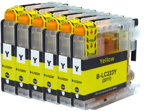 6 Yellow Compatible Ink Cartridges, Replaces For Brother LC-221Y LC-223Y, NON-OEM