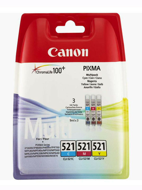 Original Canon CLI521, 3-pack Ink Cartridges, CLI-521C, CLI-521M, CLI-521Y, 2934B015