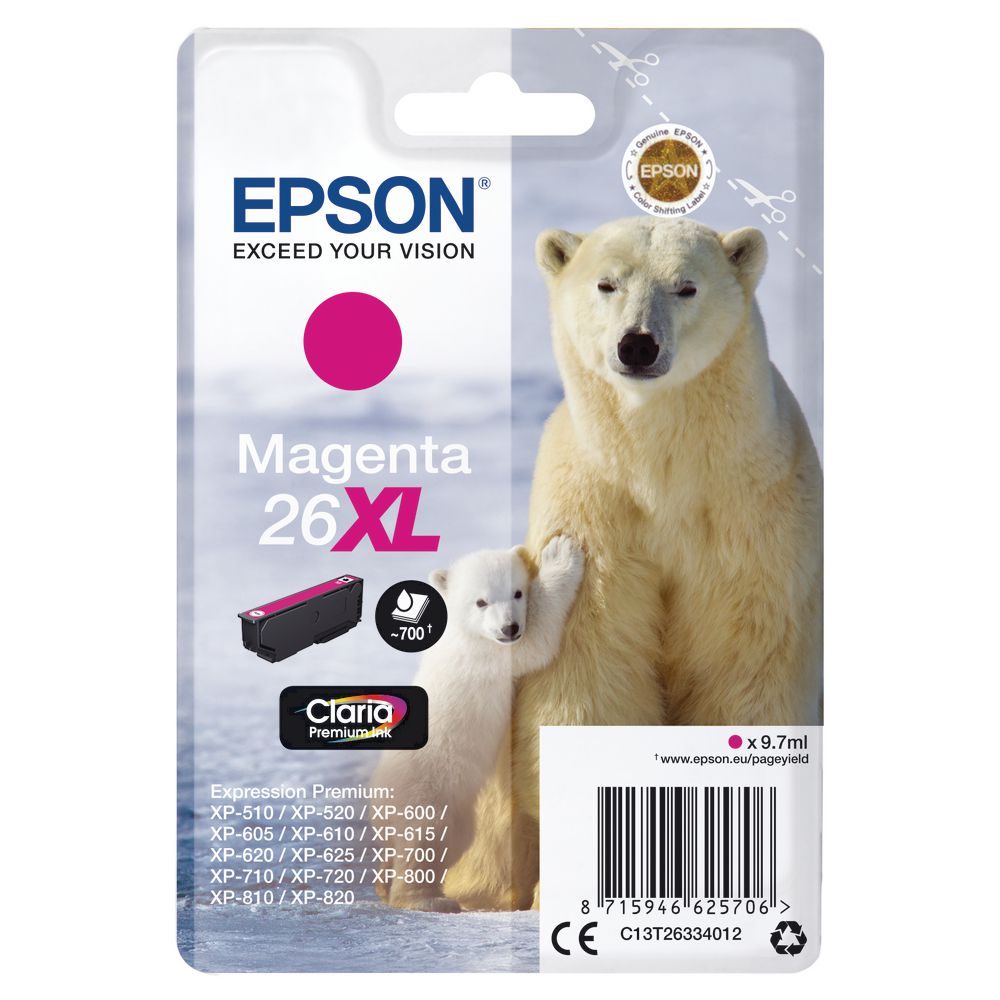 Original 26XL, Polar Bear High Capacity Magenta Ink Cartridge, Epson 26XL, T2633, C13T26334012