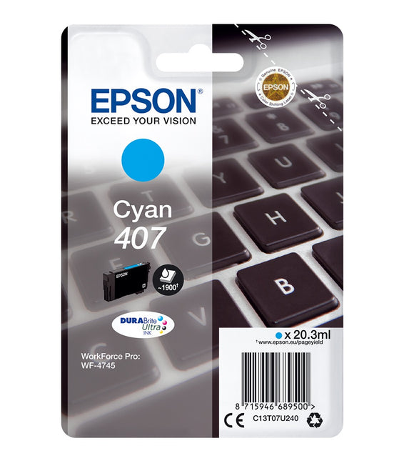 Genuine Epson 407, Keyboard Cyan Ink Cartridge, T07U2, C13T07U240