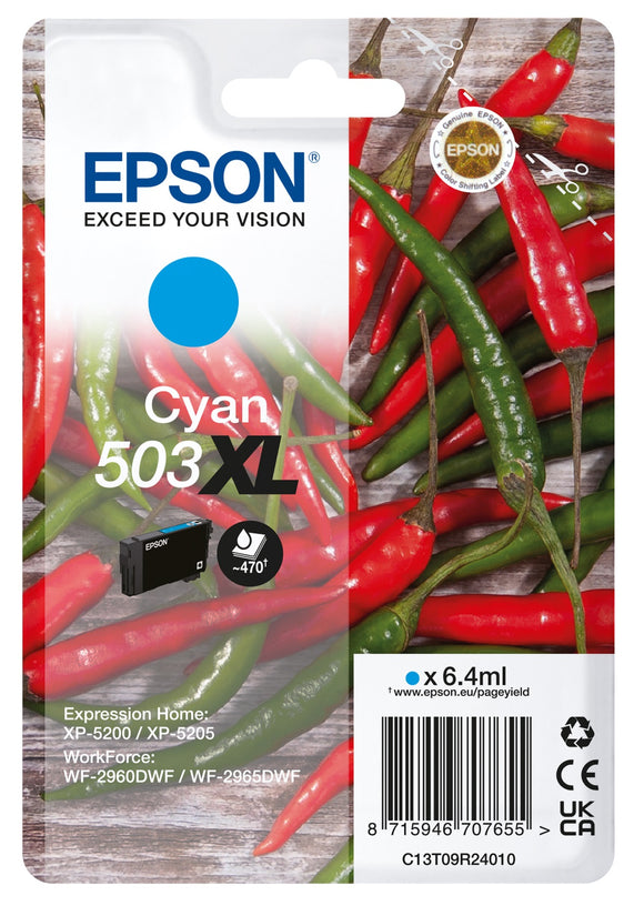 Original Epson 503XL, Chillies High Capacity Cyan Ink Cartridge, T09R2, C13T09R24010