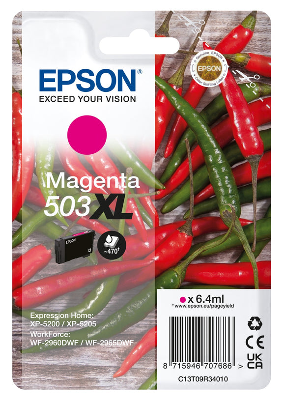 Original Epson 503XL, Chillies High Capacity Magenta Ink Cartridge, T09R3, C13T09R34010