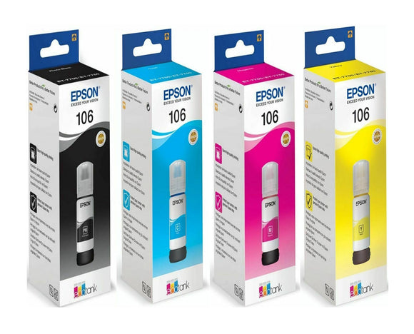 Genuine Epson Multipack 106, EcoTank ink Bottle T00R1, T00R2, T00R3, T00R4