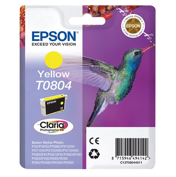 Original Epson T0804, Hummingbird Yellow Ink Cartridge, C13T08044010