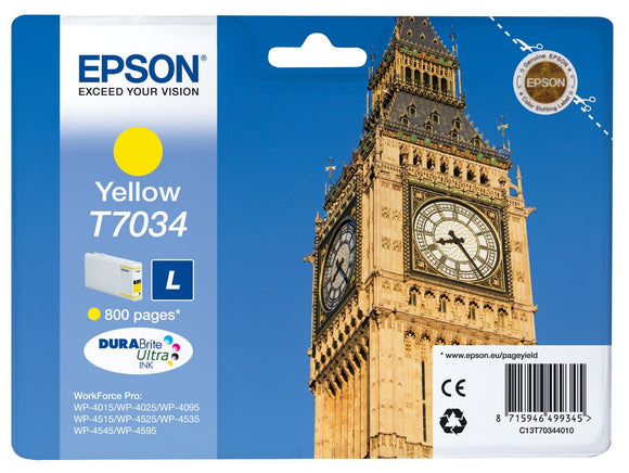 Genuine Epson T7034 L Big Ben Yellow Ink Cartridge, C13T70344010