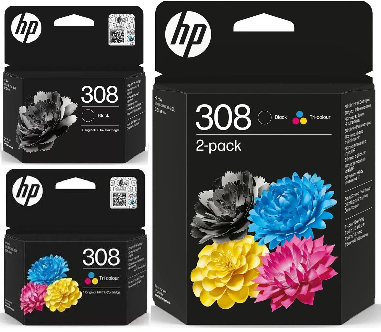 Original HP 308 Ink Cartridges BLACK / COLOUR for the 7FP21UE, 7FP20UE, 6L6S6UE