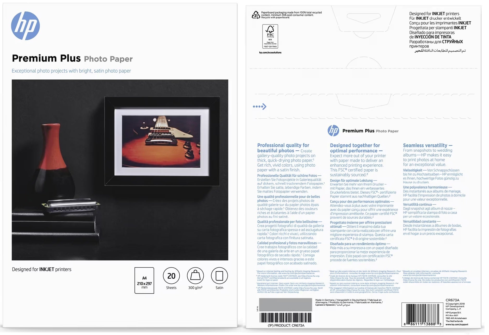 Genuine HP A4 Premium Plus Photo Satin Paper 300gsm - 20 Sheets (CR673A)